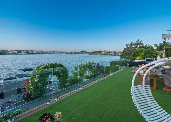 Immaculate Waterfront Residence-Masterpiece Gold Coast villa ligt binnen een autorit van 10 minuten van het Cbus Super Stadium en nodigt gasten uit om toeristische bestemmingen te verkennen.